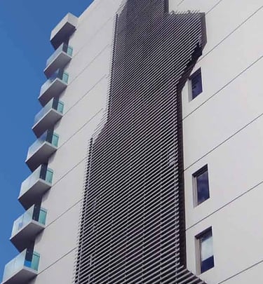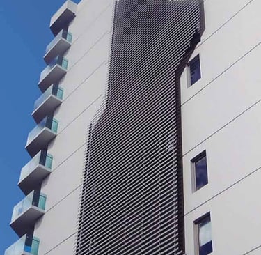 Celosías de aluminio son estructuras arquitectónicas que permiten controlar la luz y la ventilación en espacios interiores y exteriores, proporcionando además una estética moderna y elegante.